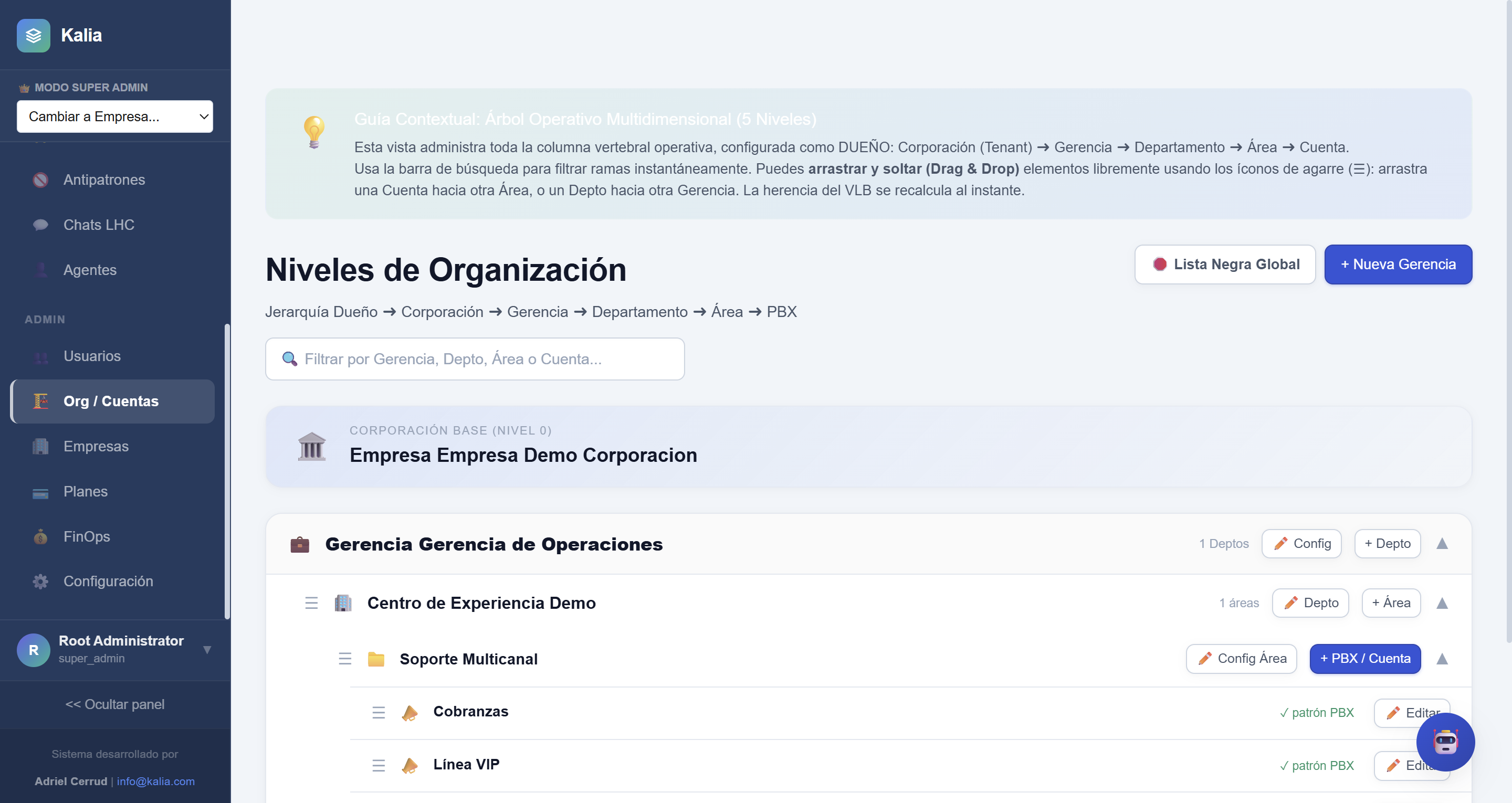 - Carga de Servidores: Si ves un indicador de "Llamadas en cola", significa que KALIA está procesando audios recientes que acaban de entrar. Espera unos minutos y estarán listos.