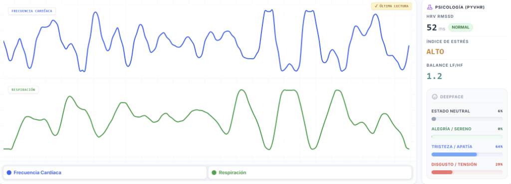 - Estados de Ánimo y Engaño: Usando la Variabilidad de Frecuencia Cardíaca (HRV) leída a través de los píxeles de una cámara web, se enriquece el reporte de QA indicando los picos exactos de frustración del usuario en la línea temporal del video.