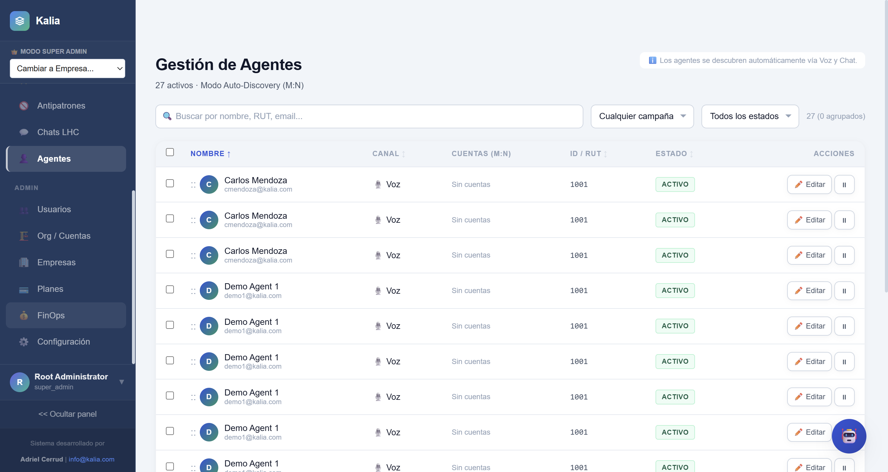 8. Gestión de Agentes
